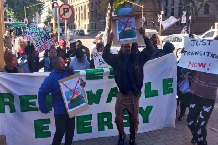 Protesting the Karpowership project outside the Gauteng High Court in Pretoria calling for the release of "critical information" regarding the Karpowership deals. Photo stock